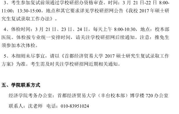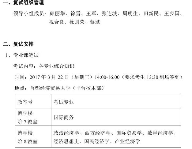 首都经济贸易大学经济学院2017年硕士研究生复试方案