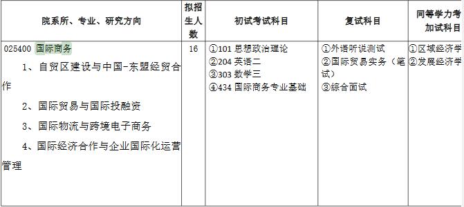 广西民族大学国际商务硕士研究生2018年招生目录
