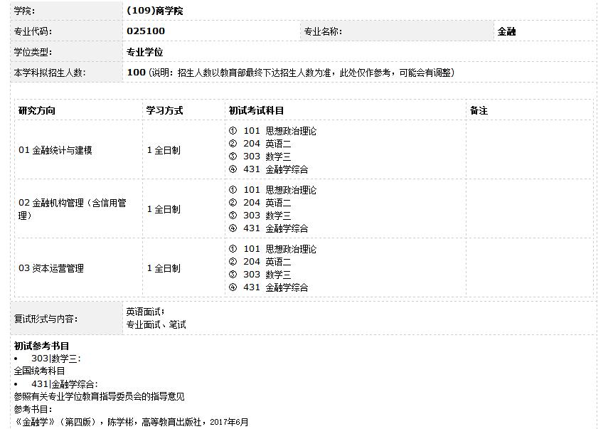 上海师范大学金融硕士研究生2018年招生目录