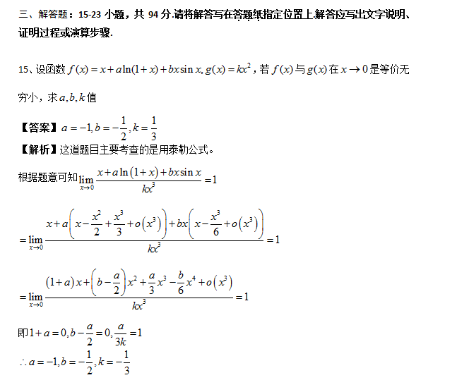 2015年全国硕士研究生入学统一考试数学三试题及答案解析