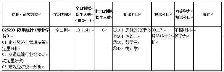 北京交通大学应用统计硕士研究生2018年招生目录
